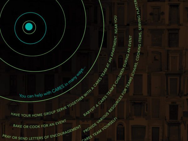 A wall display panel introducing a ministry that helps those living in apartments connect to their community. This panel is 6 feet tall by 3 feet wide.